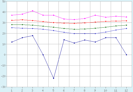 Miesiąc | Absolutne minimum | Średnie minimum | Średnia | Średnie maksimum | Absolutne maksimum |