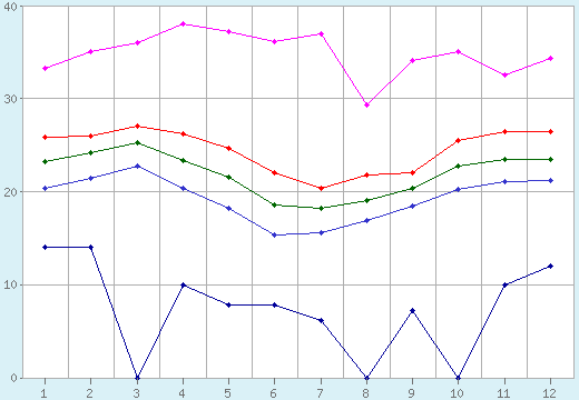 Miesiąc | Absolutne minimum | Średnie minimum | Średnia | Średnie maksimum | Absolutne maksimum |